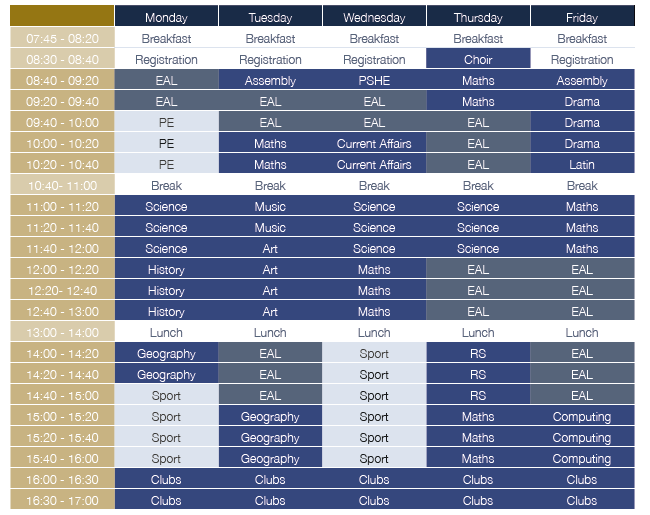 У учеников будет возможность учиться и проживать вместе с воспитанниками Boundary Oak School. В зависимости от возраста дети будут присоединены к уже существующим классам (в каждом классе от 8 до 14 учеников) и будут следовать Британскому учебному плану. Boundary Oak School представляет собой традиционную английскую школу, где отсутствует половая сегрегация, то есть, учащиеся обоих полов занимаются вместе. В большинстве своем, ученики этой школы – жители Великобритании. Они приезжают сюда из близлежащих окрестностей.